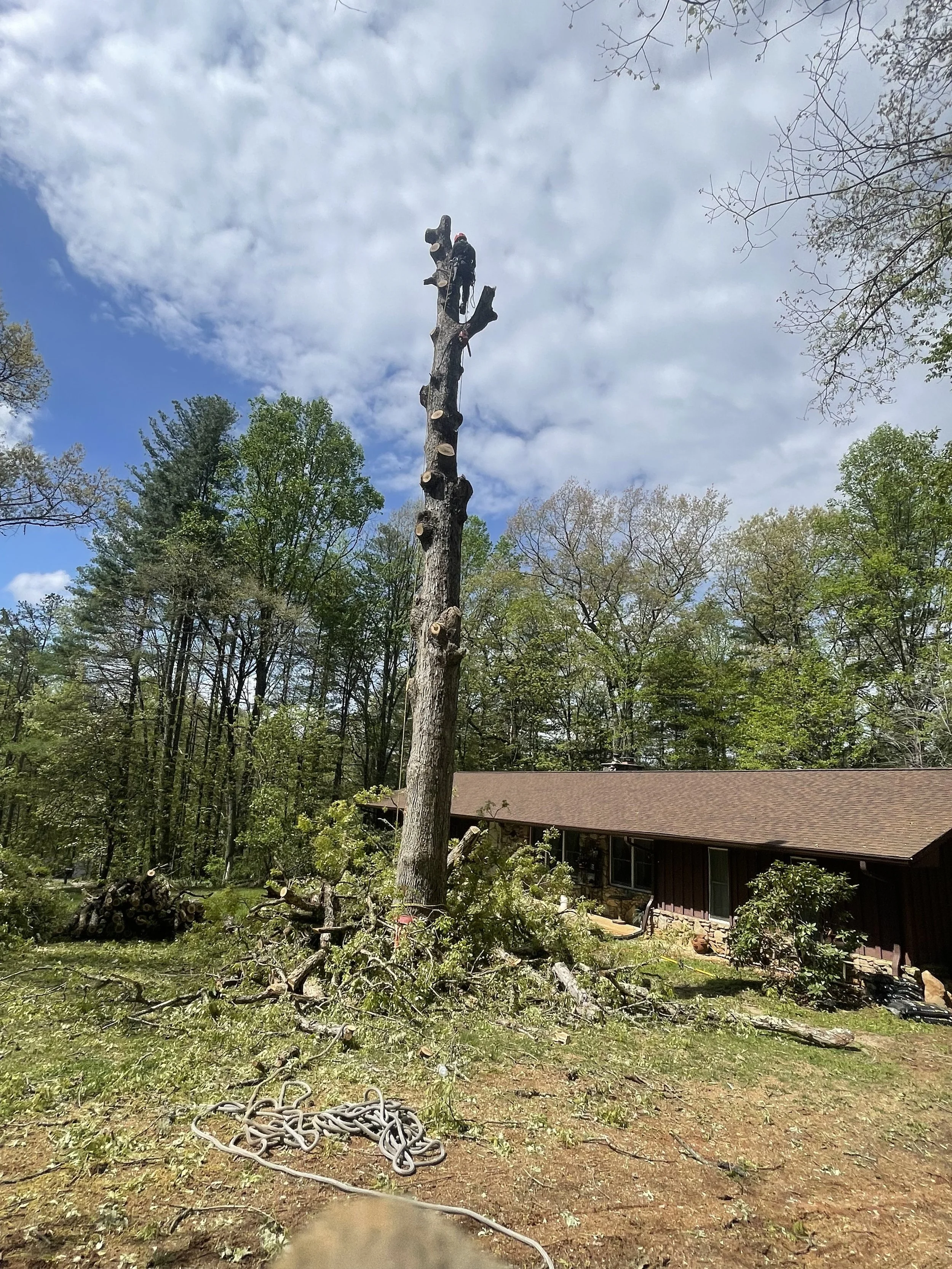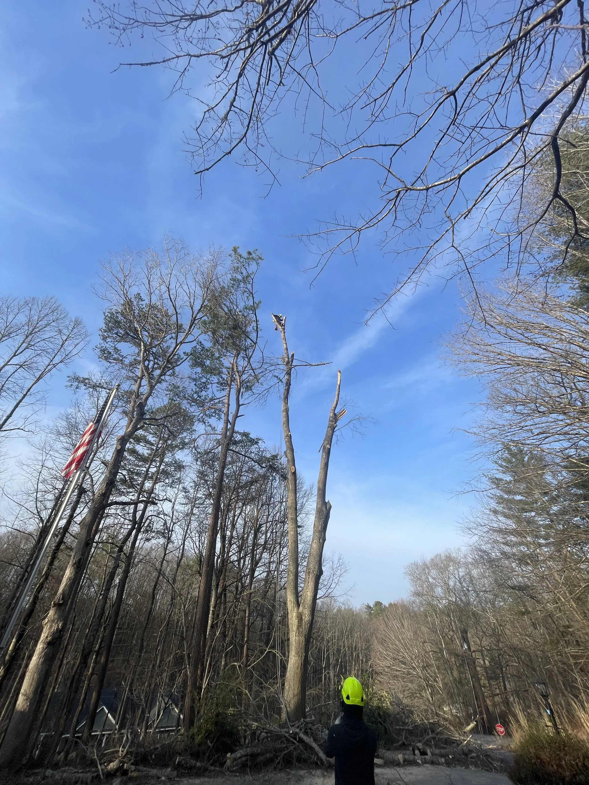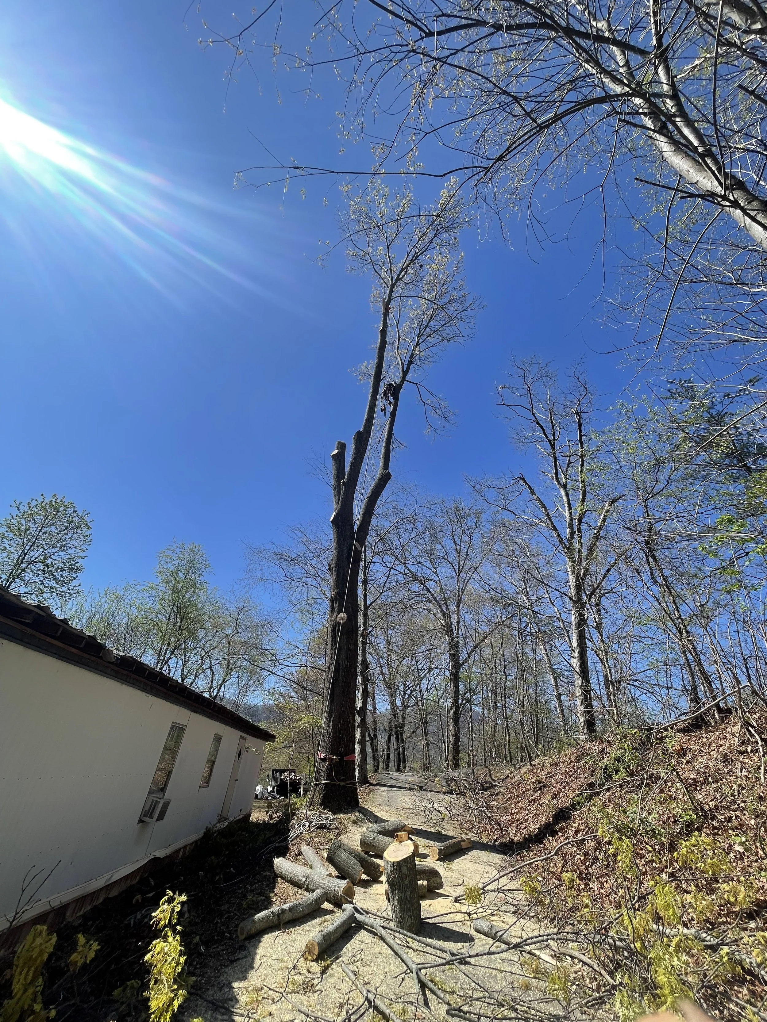 We safely removed a large tree that had been uprooted and was leaning against another tree. After removal, we leveled and restored the surrounding area to leave the property clean, safe, and looking great.