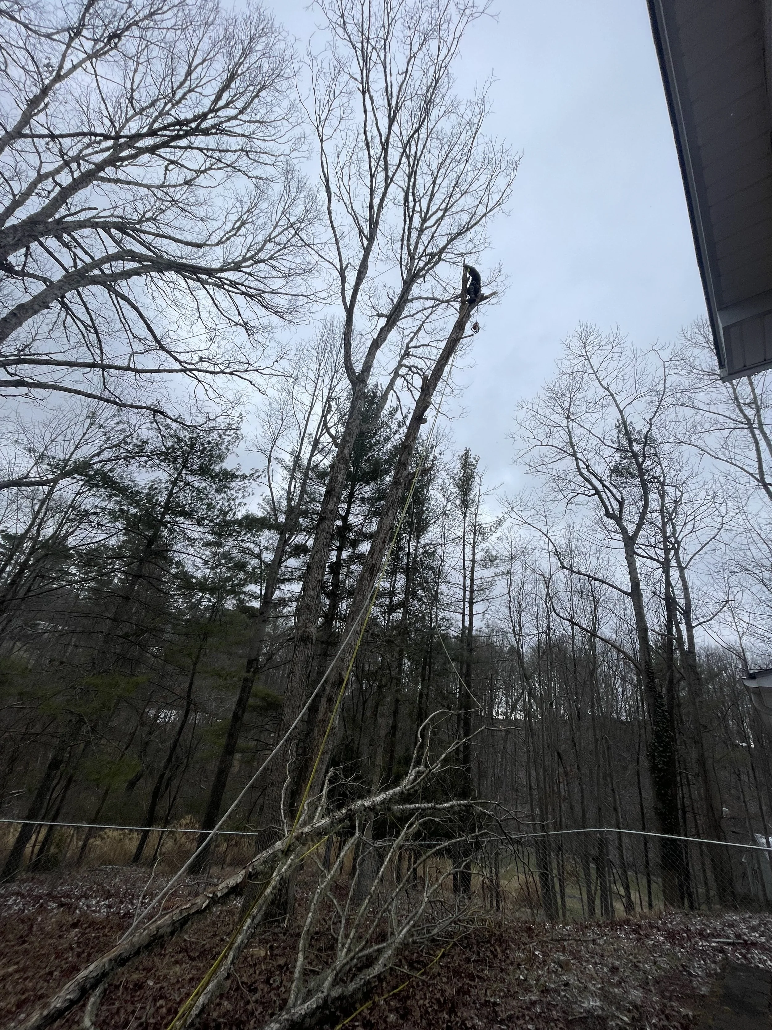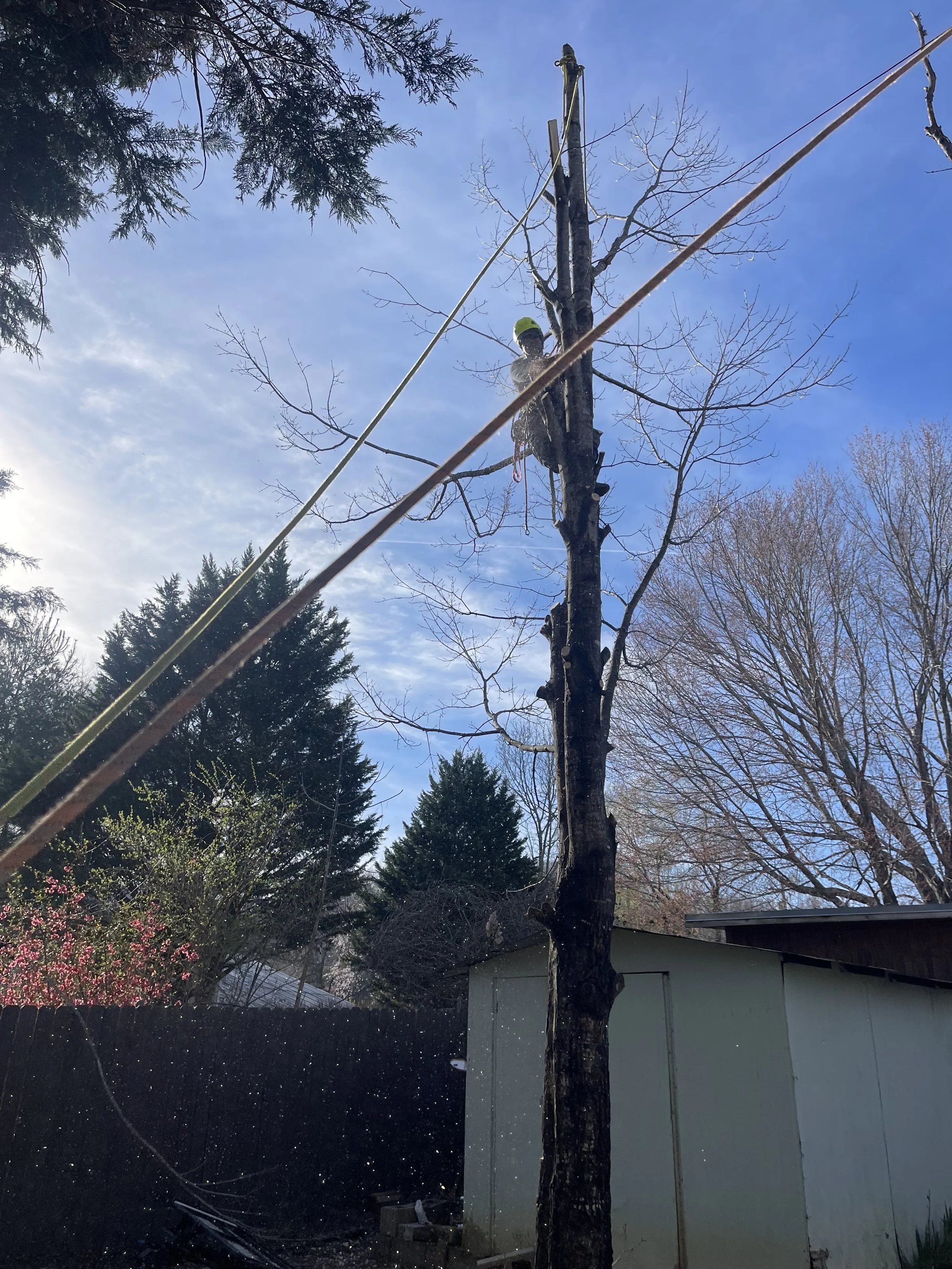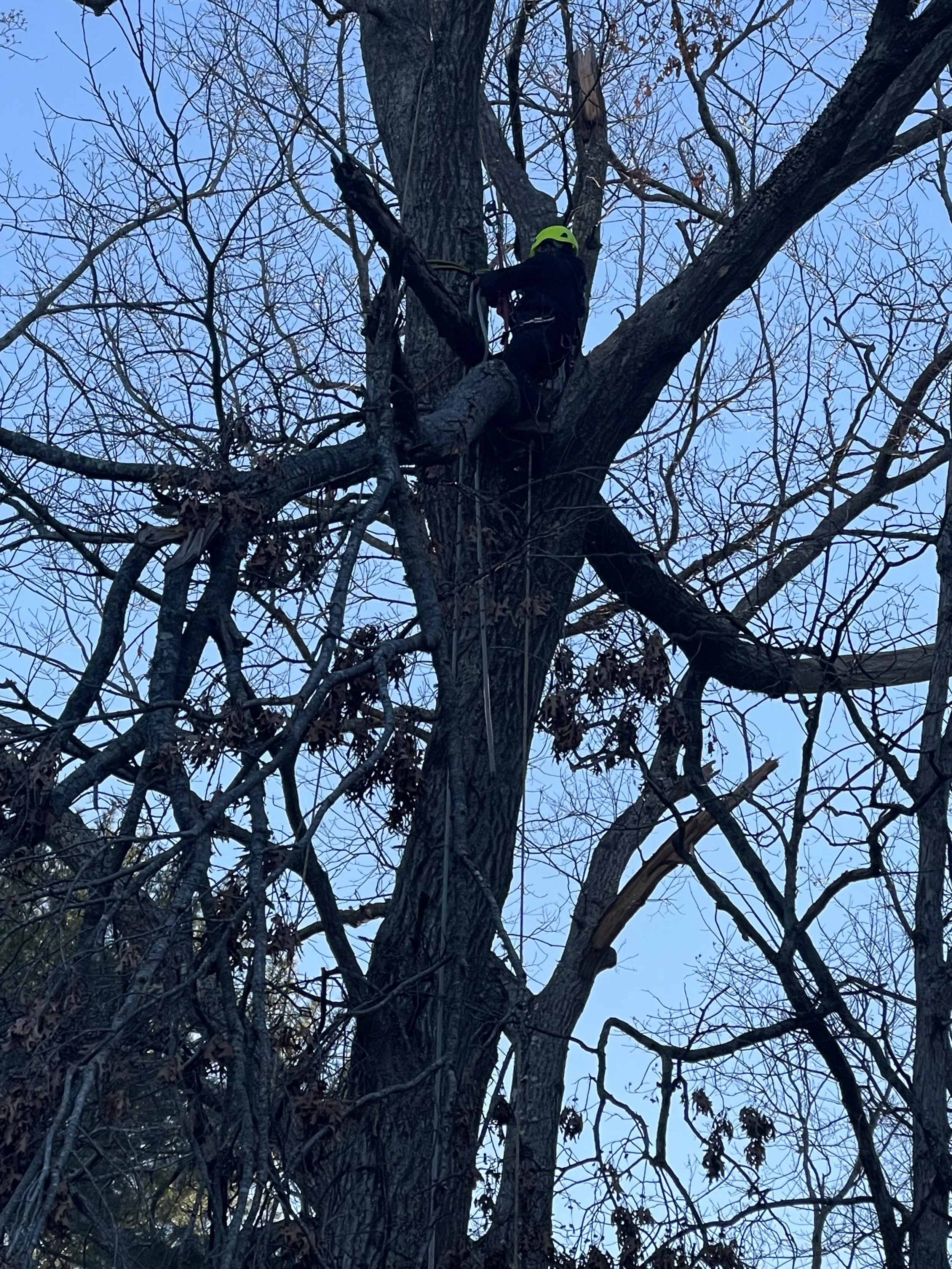 We safely removed a large tree that had been uprooted and was leaning against another tree. After removal, we leveled and restored the surrounding area to leave the property clean, safe, and looking great.